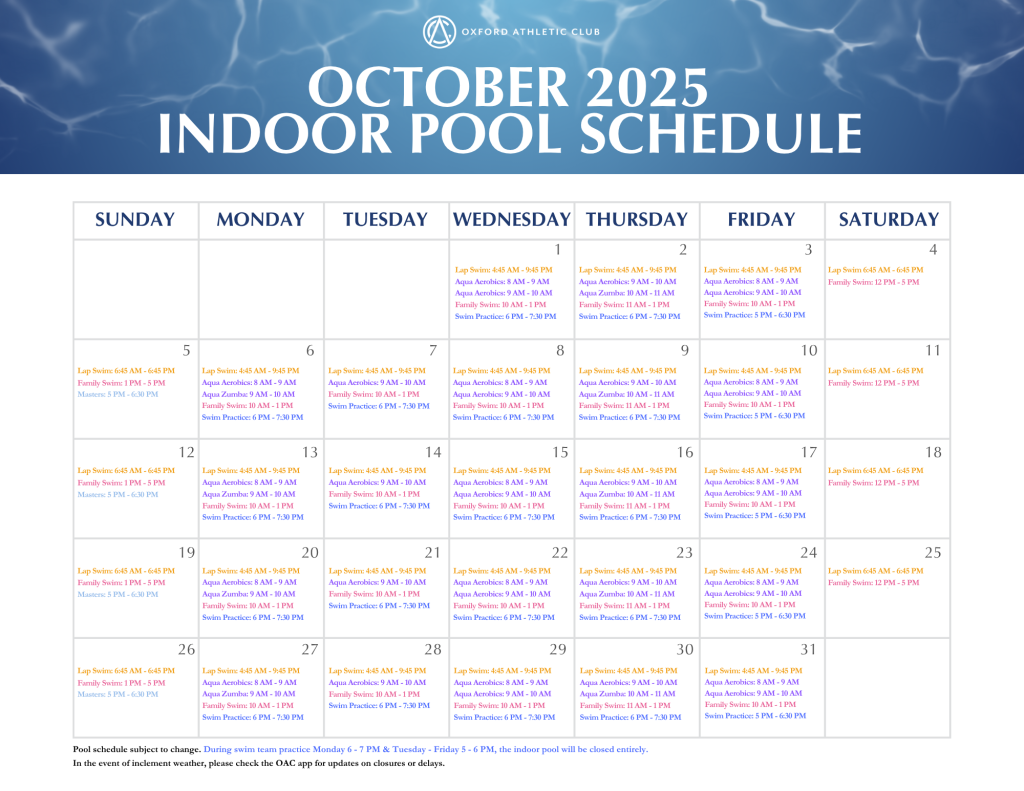 Yes, we do! For Oxford members, we offer 1-on-1 private swim lessons and group swim lessons for all ages and swimming abilities. We do not offer group lessons.