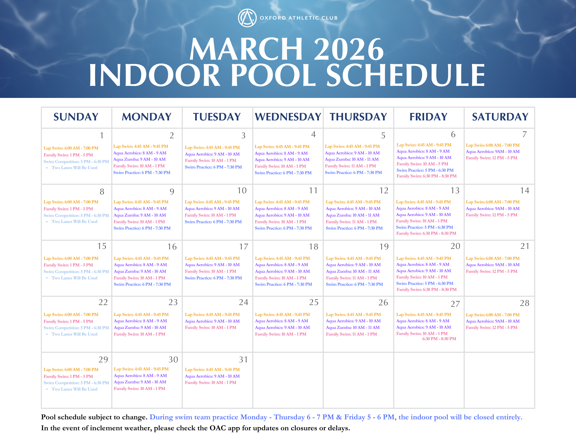 Indoor Pool Schedule