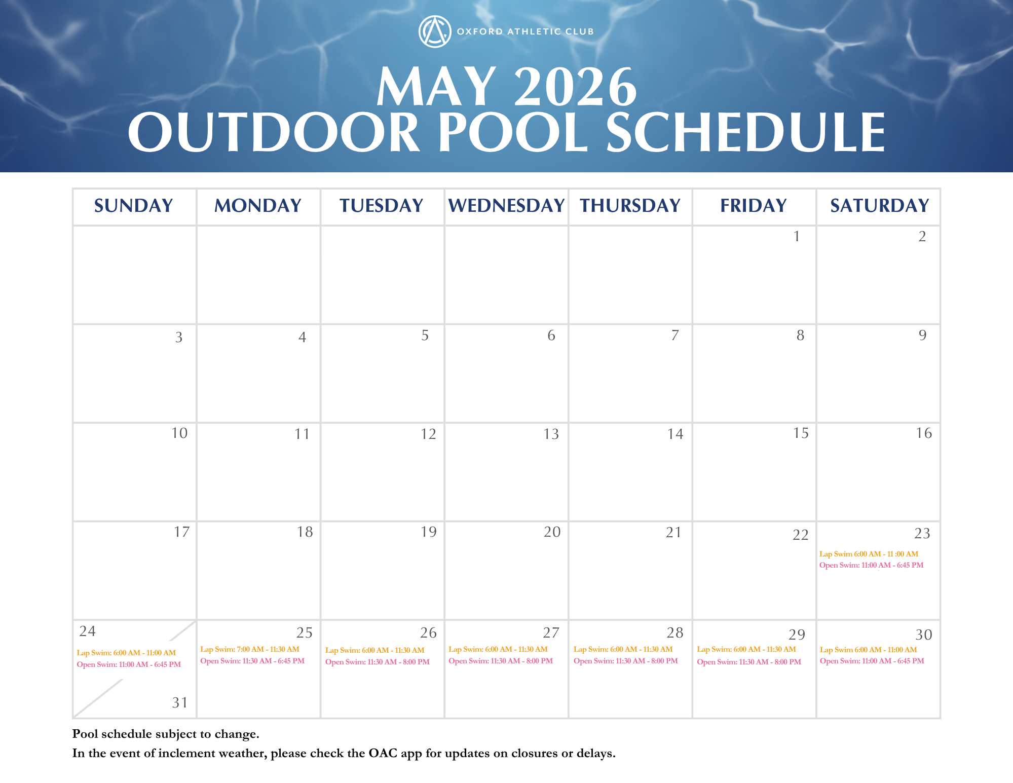 Outdoor Pool Schedule
